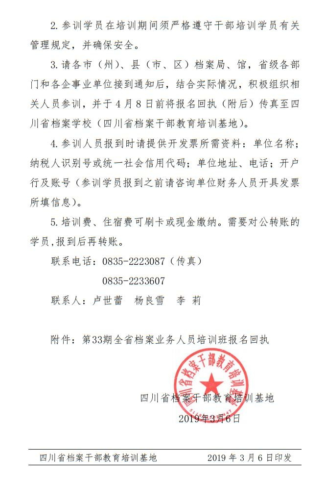 四川省档案干部教育培训基地关于举办第33期全省档案业务人员培训班的通知