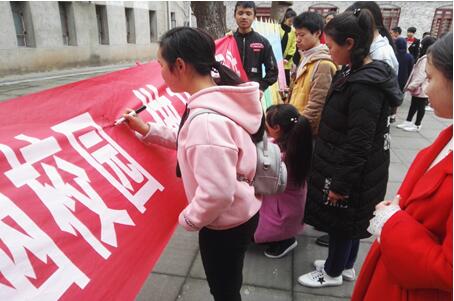 活动由校团委组织委员姚王娇主持。学生代表讲述了 “禁止吸烟、控制烟害”是世界的潮流,是现代文明的体现;指出了吸烟不仅会危害青少年们的健康、影响个人形象、污染环境,而且可能诱发火灾,造成安全隐患。随后,学生纷纷在条幅上签上名字,许下自己的承诺,表明共建无烟校园的决心。