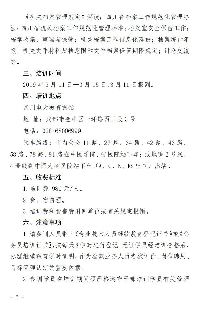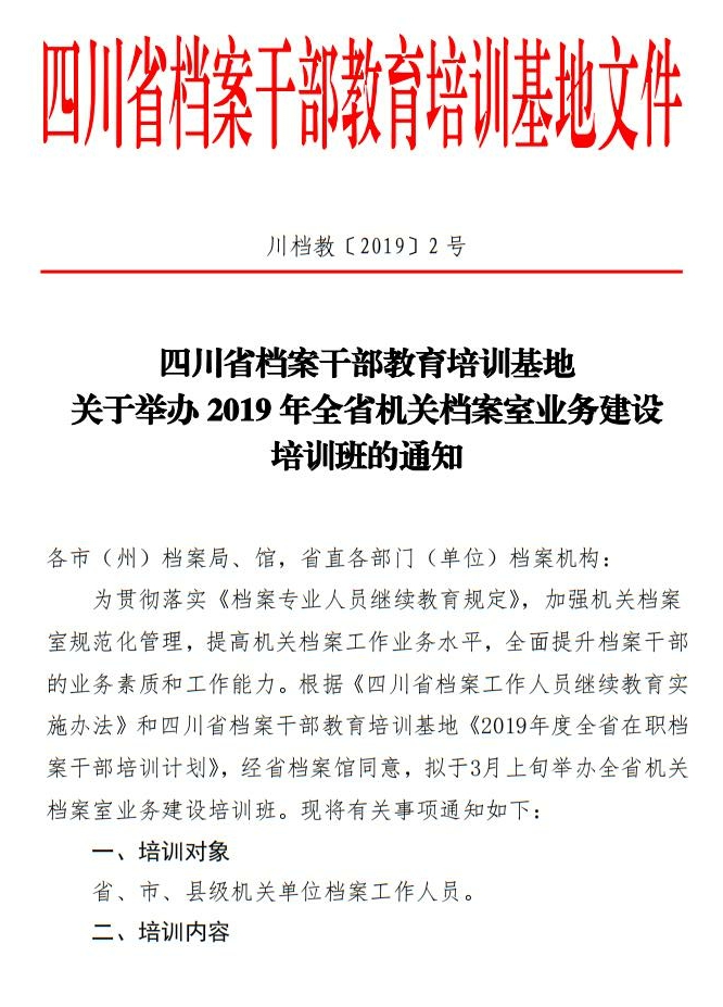 四川省档案干部教育培训基地关于举办2019年全省机关档案室业务建设培训班的通知
