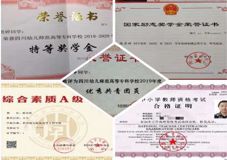 陈贵婷,2016年就读四川省档案学校学前教育专业(班主任:郑德娇),2019年通过对口高职单招考试考入四川幼儿师范高等专科学校学前教育专业,2022年通过专升本考试考入四川师范大学学前教育专业。