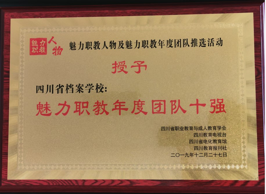 12月27日下午,以“塑大国工匠·扬职教风帆”为主题的首届“四川魅力职教人物暨魅力职教年度团队评选活动盛典”中,四川省档案学校从第一轮专家评审入围年度团队三十强,经过网络票选和第二轮专家评审进入十强。